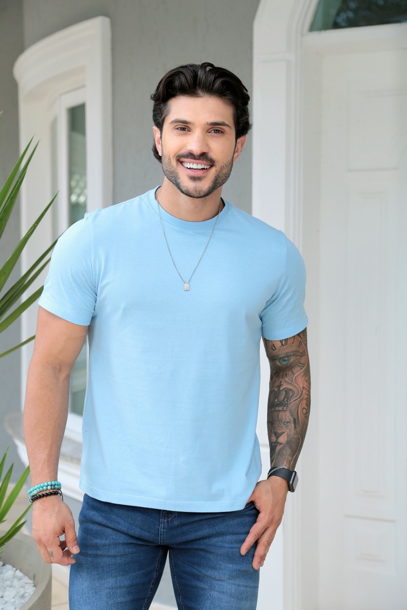 Camiseta Básica Algodão Premium - Gola C - Manifesto - Weller You - Azul Supera