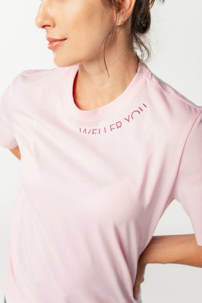 Camiseta Básica Algodão Premium - Gola C - Estampa na Gola - Rosa