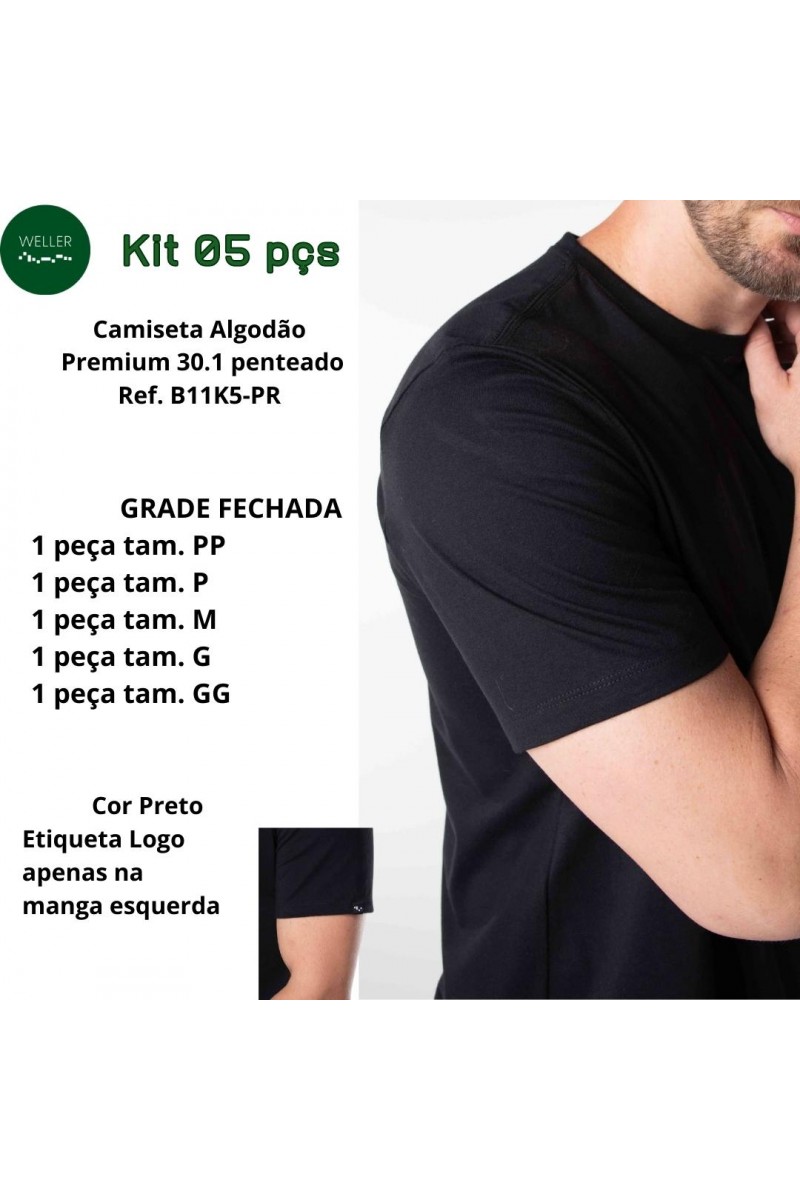 Kit 05 Camiseta Básica Premium - Preto - G